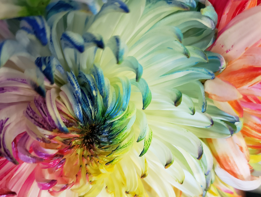 Hi, it looks wonderful! I think that there is a perfect composition: if you set the golden spiral grid on, the center of the flower sits right in the center point, and the tips of the blue toned petals fall on the arch. I think that the upper left corner is fine, too. If you want to experiment with a more abstract feeling, you could try to flip it over into a maybe more rainbow-like position? |