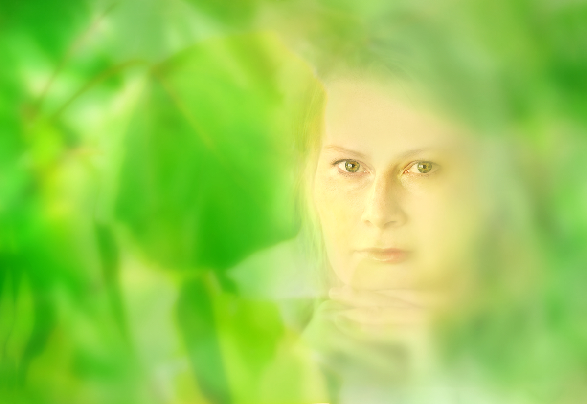 Hi, here is my next attempt. I reduced brightness and increased contrast to get rid of the flat overexposed look. To bring back the feeling of sunlight filtering through the leaves I added an external spot light source to both the upper corners, and some layers of leaves and Gaussian blur to soften the effect. - I think that this needs to be a soft, high-key image - she is a spirit, after all, and I would like to make her look like she could as well be just a trick of light and shadow. - Do you think that this is any improvement? |
