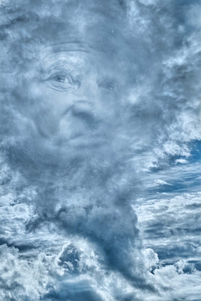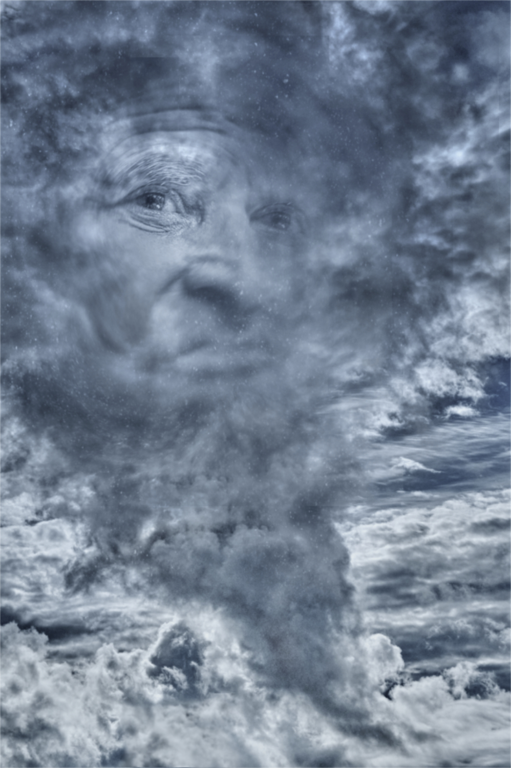 Hi Peggy, here is the next version with less contrast in the clouds. I think that he is gathering more and more strength, and would not be surprised if he decides to hurl himself out of the monitor one of these days. |