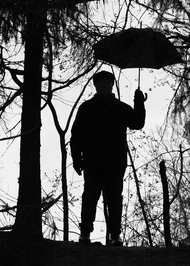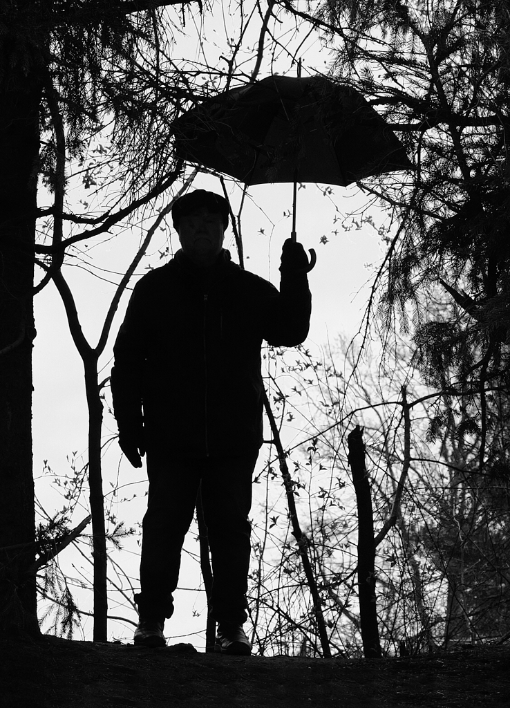 Thanks, Jeff, something like this? I tried many different crops but not this one. I thought that the black frame of the tree was needed as a frame, and to convey the feeling that the Sandman appears amongst trees to a clearing, but it seems not be necessary at all. It also eliminates the heavy black element from the right edge, some of which is not quite perfectly in focus. A definite improvement! |