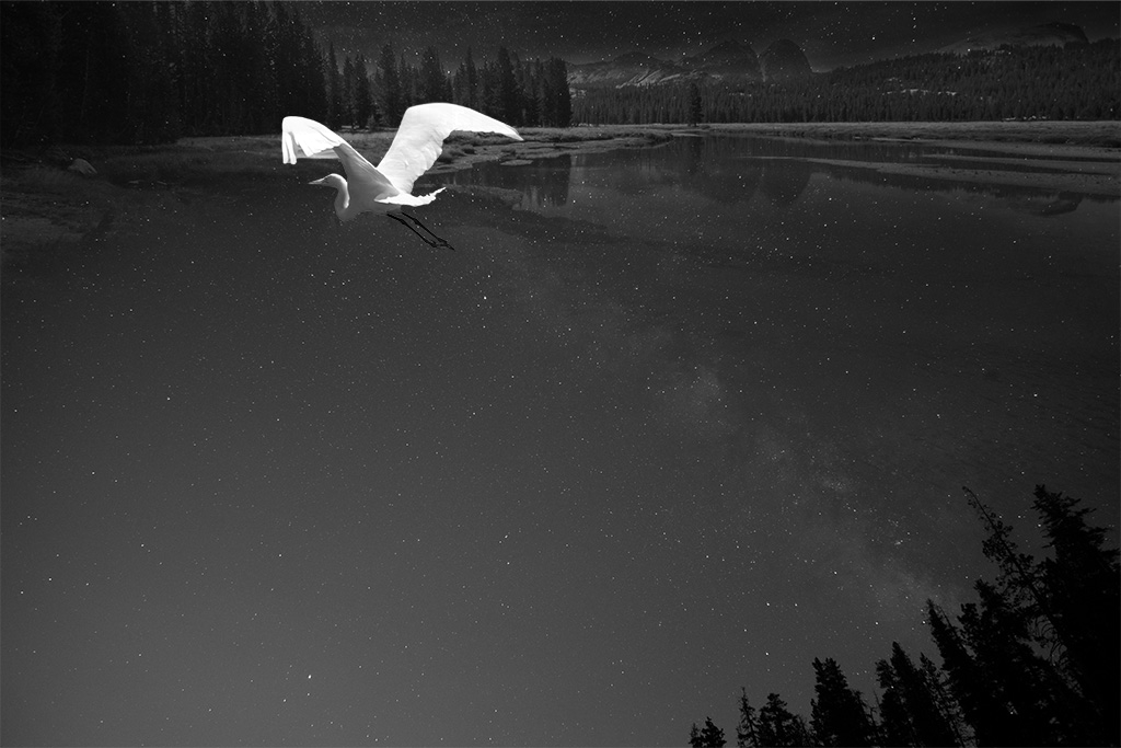 Brad, I think that you could not have found a more beautiful way to convey the message. The way the mountains, the forest, the lake and the milky way melt together is exquisite, and I feel that the position of the bird is just right. - I wonder if turning the bird (the yellow beak) into black-and-white would add to the mythical quality? - I think that you have grasped perfectly the "between the not-yet-now and the not-quite-then" (as Doctor Who puts it) feeling of retirement. |