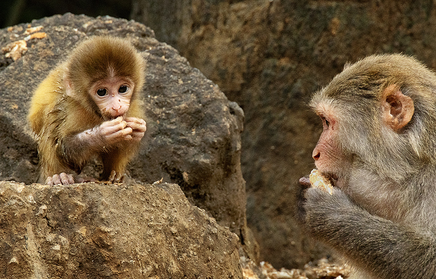 Hi Tony, what a sweet family portrait, with the baby looking directly to the viewer with those endearing black eyes, and the mother keeping her eye on him! I love the way the rich tones of their fur are repeated in the background. -I wonder if a slightly tighter crop might further emphasize the contact of the pair, although it would be a pity to lose any of the fine texture in the foreground rock? |