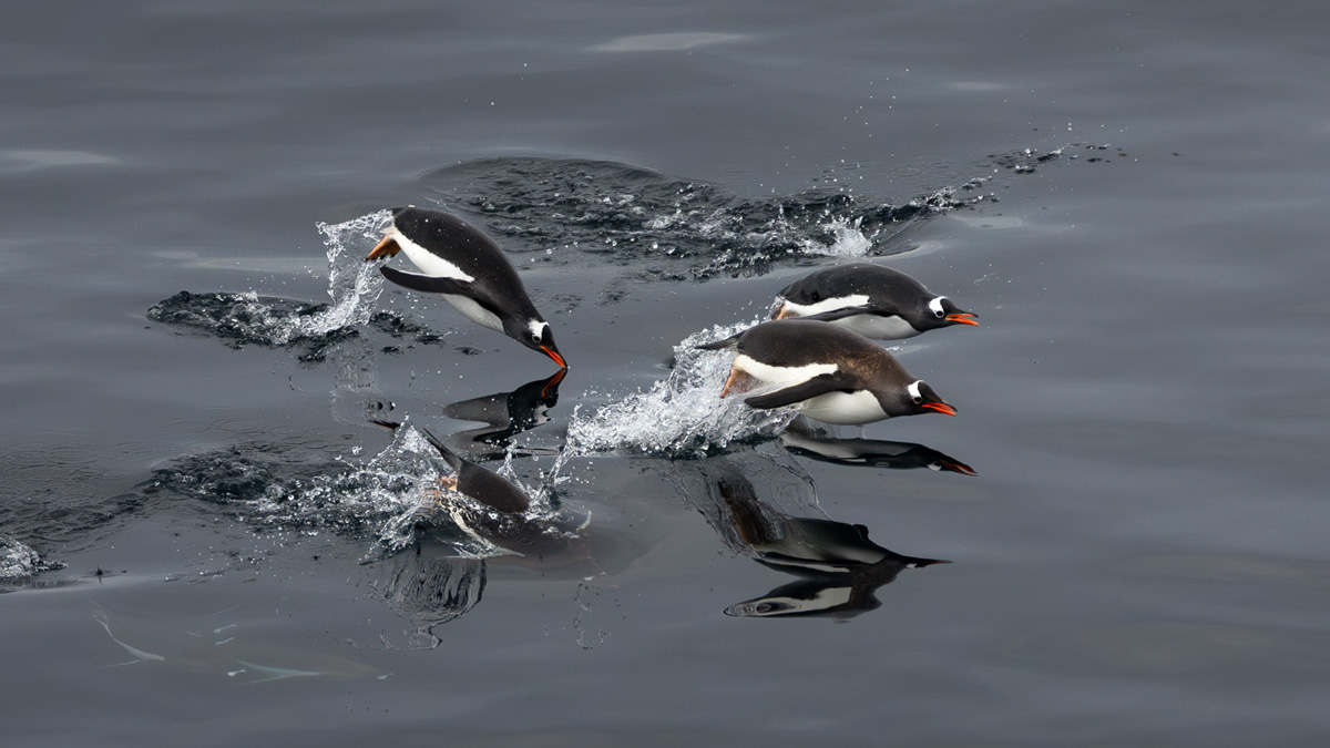 Agnes, you have used the trip so well for these amazing and unique images. I admire the way you got the birds so sharp in frozen movement, both in the air, as reflections on the surface of the water, and below. - I think that the small bright spatter at the right edge may draw the eye a bit from the penguins. Is it possible to reduce its brightness slightly in a Nature photo? - Have you thought about flipping the image horizontally? |