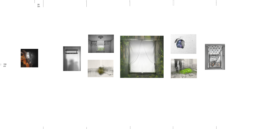 Thank you, Mervyn! You are probably right with the white lines. - I can imagine myself lying in a bed in the bare bleak room, staring at the soft light that leaks into the room from behind the curtain, and little by little, conjures a forest on the walls from my memories. It will be interesting to see if anybody else can catch the feeling, and I do hope that it helps to see it as part of the entity: here is my display plan for the exhibition. |
