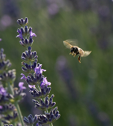 Hi Tony, to me it is the motion of the wing of the tack sharp bee that makes the image special. I wonder if a tight crop that would show only one or two of those lovely backlit lavender sprigs, and the bee against the blurred background would show him off better - I realize that it would make a more conventional composition? |