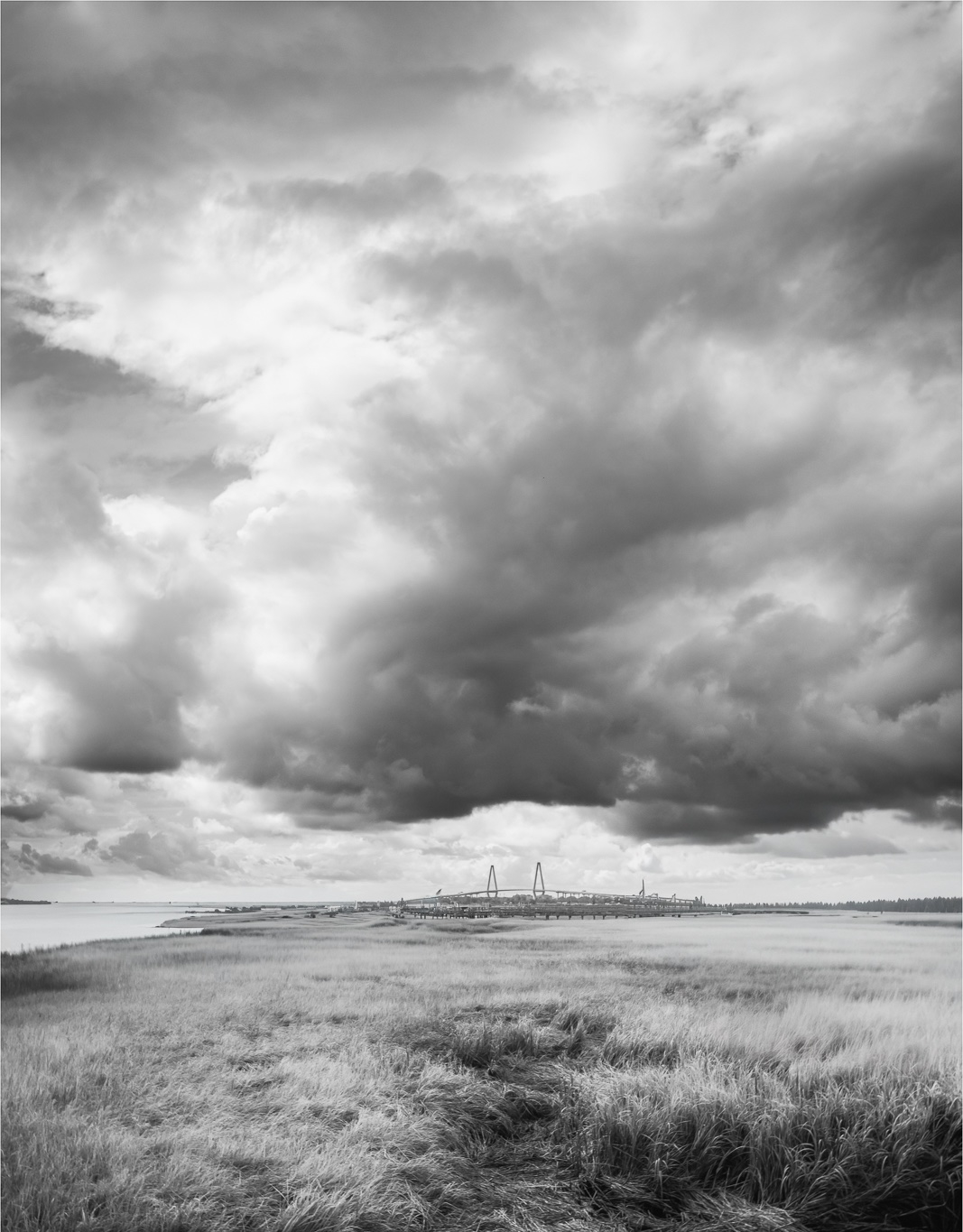Hi Barbara, what a fine image! About the crop: I think that I would go for landscape format, like Doug, or keep the original square. I can see the temptation of the portrait format, though, and I think that one option would be to go all the way and let the clouds rule, and sacrifice most of the flattened reeds with the fine textures at the bottom. |