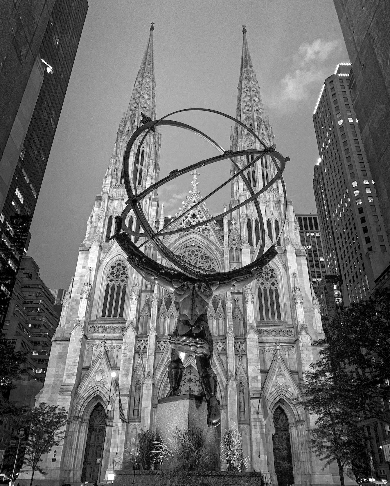 Hi Robert, I admire the way you see the humor and the drama around you and transfer them into compelling images. - About processing, I think that I would check the black point and try to open up the darkest areas a little. Or, I experimented with the NIK Color Efex Dark Contrast filter that I think did a nice job? - I wonder if cropping off a bit from the rather busy bottom part might direct the attention to the statue better and calm the image down: maybe cut off most the bottom of the pedestal? And if you are in a daring mood, it might be fun to try a crop at his waist level, as after all, the most interesting things happen above that. |
