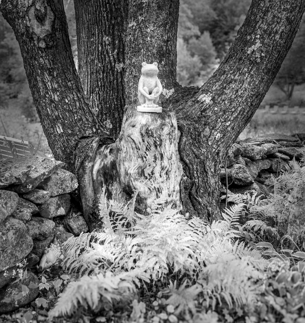 Hi Doug! That must have been a charming place to visit! I love the center part of the image with the lighter part of the tree where the bark has worn off. It seems to flow into the delicate ferns as if the frog were sitting on top of a waterfall. Like the others, I would like to darken the background, add some contrast, and crop a little off the bottom edge. - I put the image into NIK Color Efex and applied the "Lighten/Darken Center" filter to brighten the frog and the bare part of the trunk and the ferns, and to darken the edges. I think that this may also make the branch Al mentioned less conspicuous? A little more subtle effect would probably be enough to show the frog off, and look more natural? |