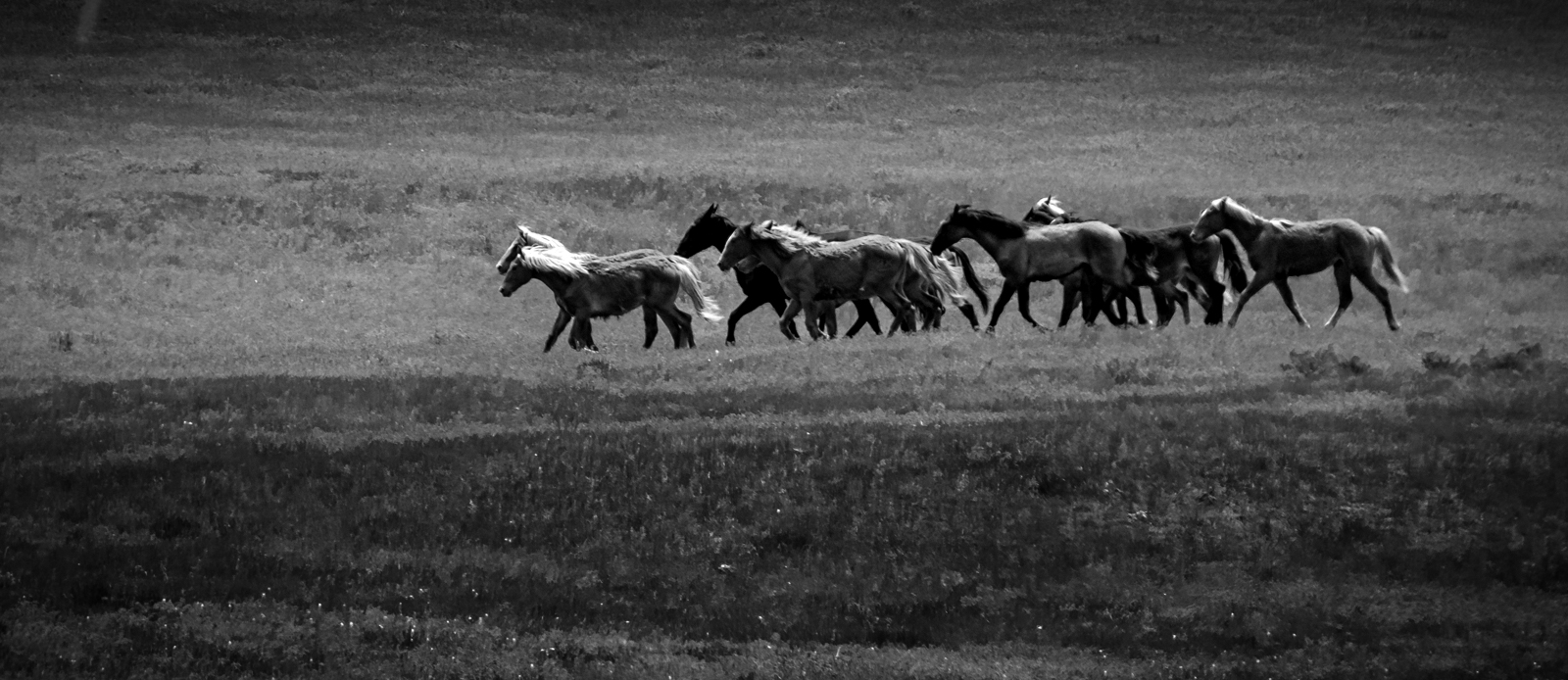 Hi Darcy, a nice sharp image where it should be sharp, I agree with Greg on a crop, I would go for a narrow landscape look. I like the placement of the horses on the frame, it works well. I think the whole image is a bit flat and suggest a selection of the horses, sharpen a bit to increase contrast and darken the forground and background for more contrast. Nice to see the horses running wild. My quick edit hopefully shows better than I explained. |
