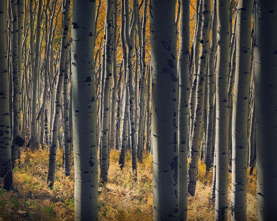 My view on the crop is that it is just off by a couple of mm on either side: the thin slivers of light on the right and left distract me - where-as I think a small adjustment turns the outer trunks into solid frames and so keeps my eye in the center. |