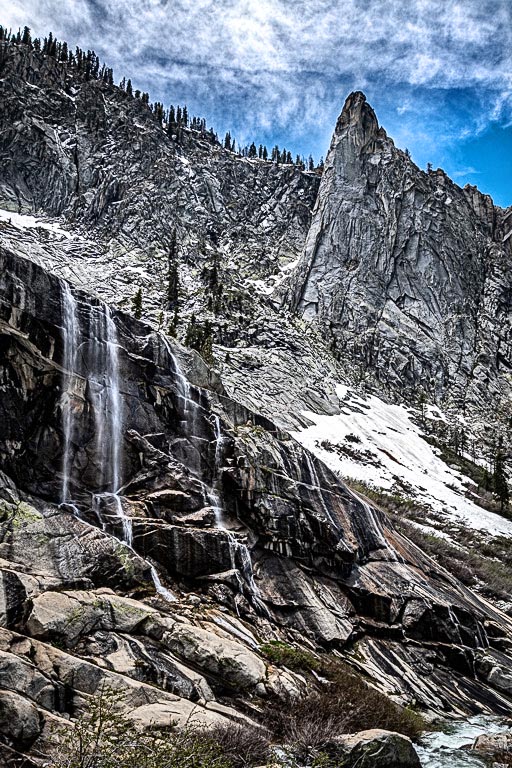 I see a full range of tone: snow to shadow with no loss of detail. I find the repetition of a left to right diagonal to really tie the image together, adding for me to the sense of height (or rather the possibility of falling). The focus seems to me to be spot on - so I wonder how you anchored the camera for this slow exposure, which I think was well selected to give clarity to the waterfall.