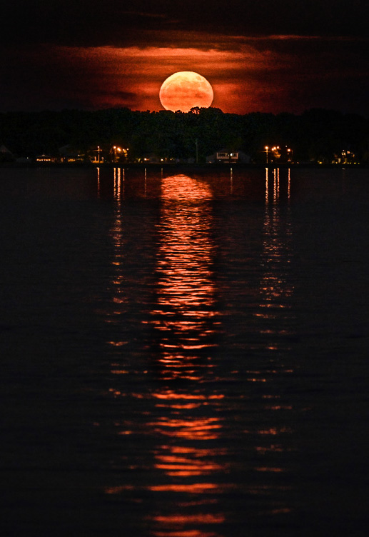 I wonder if may suggest a different crop. For me the moon and its reflection are themselves worth the viewer's focus and I worry that the symmetry you added may detract from that simpler beauty. |