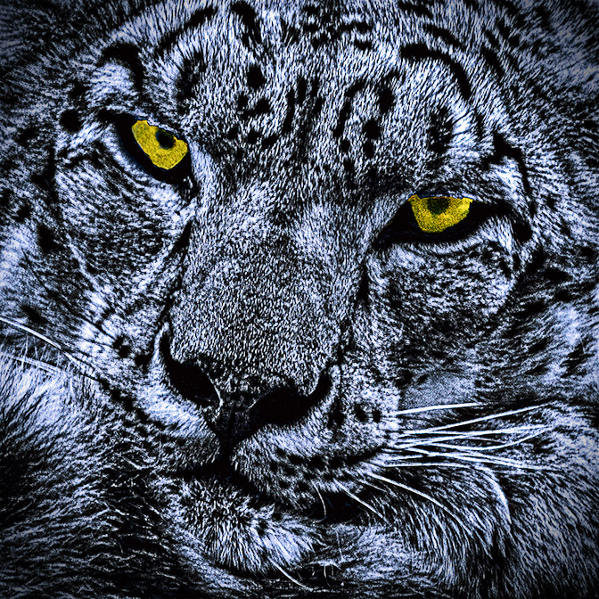 This image appears to me to have wonderful clarity and I really like the square aspect ration that focuses so directly on the face: the tilt of the head seems to help with the hint of menace. Yes I like the eye color.