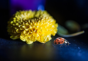 Blue, yellow and an accent of red: I think the lady bug addition was key to making this image pop: it stands out so much more for its color than its small size.