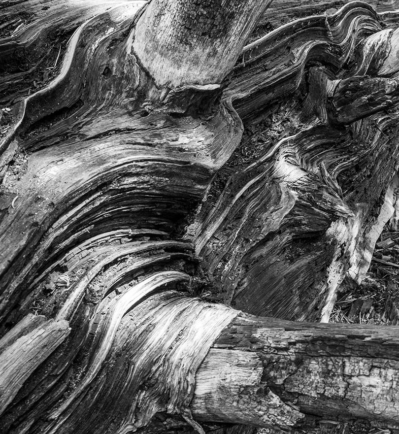 I think the image is a complex combination of micro and macro structure: the details of the small lines and features are themselves interesting but I think there needs to be a clearer macro structure to guide the viewer - which I seek by a closer crop. The snake motif is a good idea, though I confess that I a not seeing it myself (?). However, by suggestion is below. |