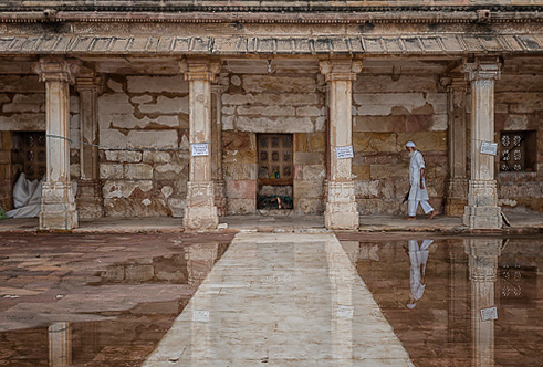 2. I find the light water at the base draws my eye down and out of the image. If you darken the water somewhat at the base of the image it may help anchor the building? |