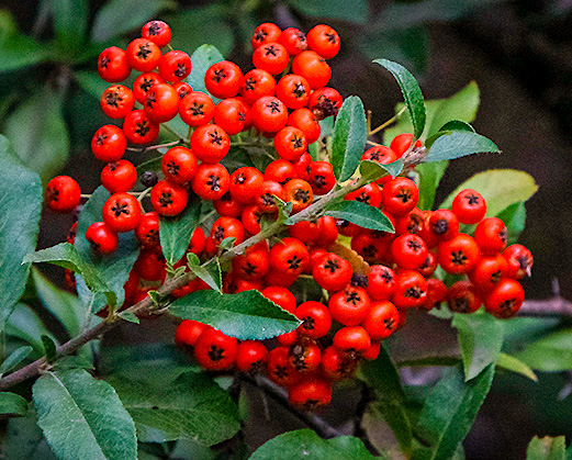 Pyracantha is difficult to get the colors right. The image on my screen is a little bit cool. So I warmed it up a bit. Also, I found the out of focus areas to be distracting. So, I made a square crop. I used Lightroom for these adjustments. |