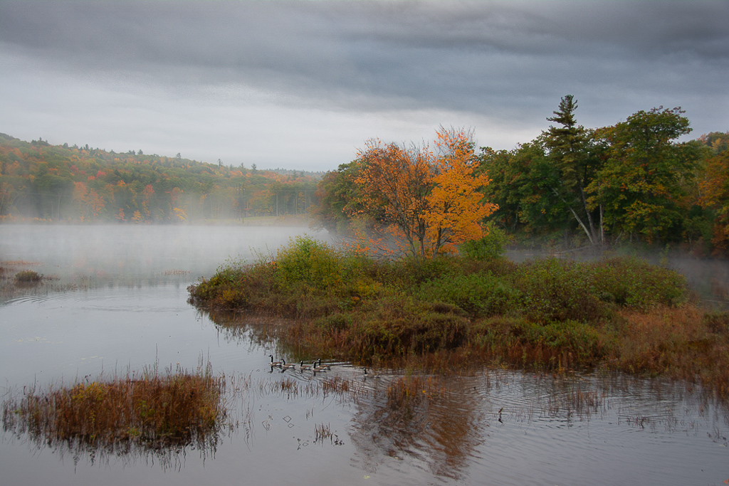 I think your treatments of the fog and sky are well done; fog is hard to work with but you accentuated it well. I wonder if an even more dramatic sky, particularly in the right half, would help.