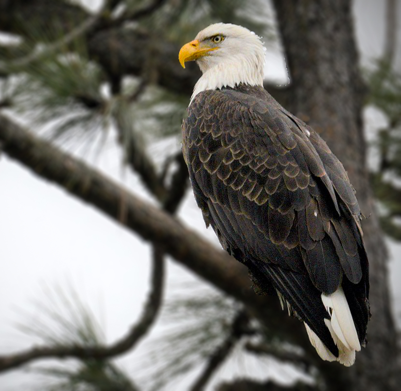 Bill, you have captured a beautiful and natural image of the eagle perched on the tree branch but fully alert and scanning the lake for a catch. I find good composition and overall sharpness in the bird, particularly in the eye.