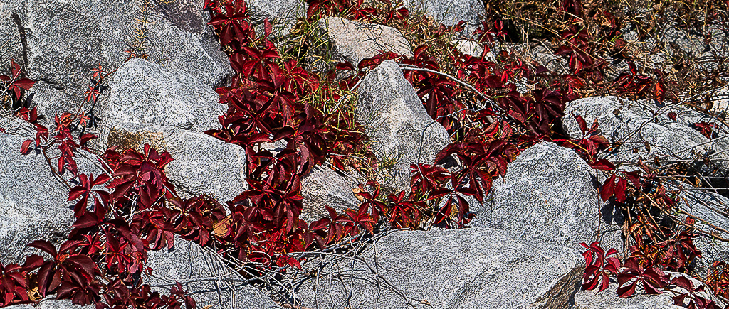 Jim I love taking photos of colors, shapes, and textures in nature. I like the rich red colors of the leaves in your photo. To me the photo looks a little out of focus for a colors and shapes photo. I tried going back to the original photo to try and sharpen it, but it did not seem to help. I tried your idea of cropping the photo a little more, using the edited original, see attached photo. I like how the photo looks with a tighter crop. |