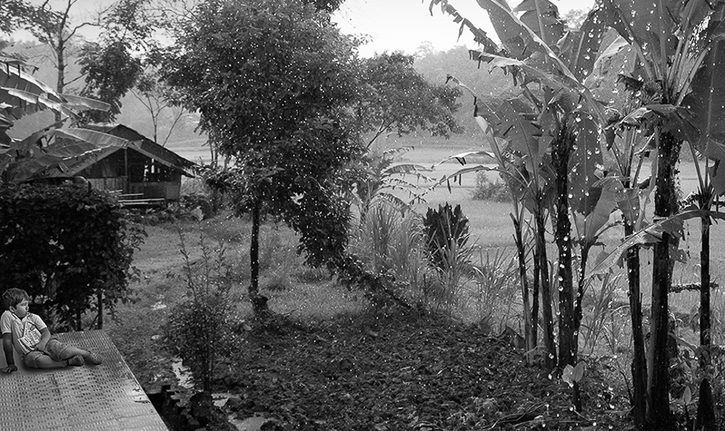 Sam great post editing job combing the two photos. You captured the sad mood you were aiming for. My only suggestion would be to place the boy a little further from the left edge of the photo. Also, if you crop out the overhanging roof the photo is more focused on the sad rainy-day boy as the central focus of the picture. See attached photo. |