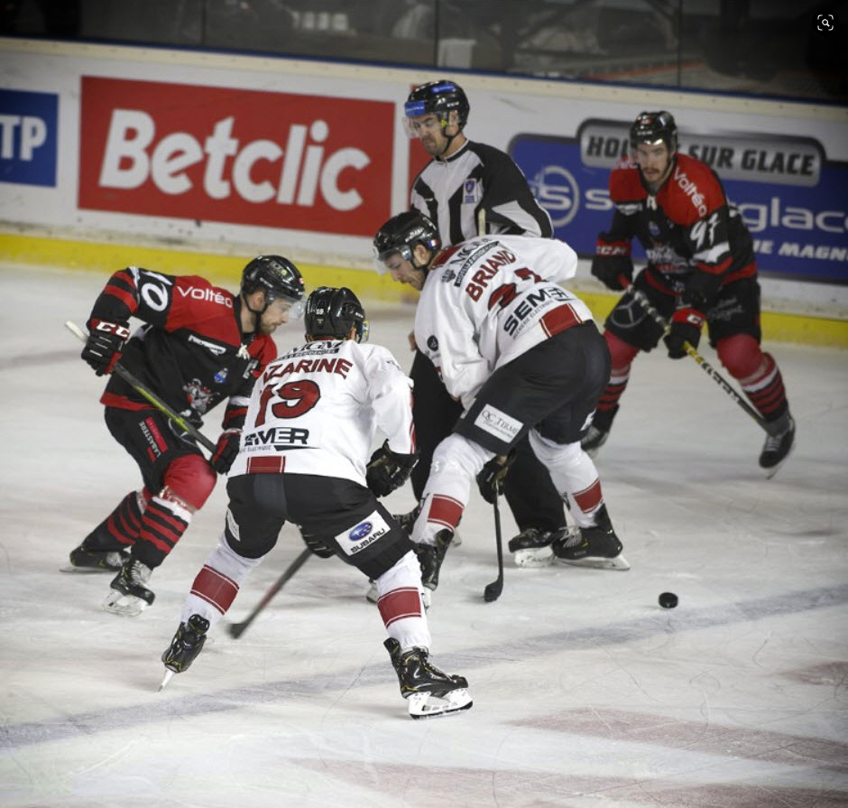 This is a fun image to critique, although I (as others) do not have the skills for this type of photography. Nor do I watch much hockey. Therefore take my suggest with a grain of salt. I thought it might be fun to focus on just the 5 guys that are after the puck. Within this group, the only guy with his eye on the puck is the guy in the back in red. I hadn't noticed this until I cropped it square. Just a thought. A great image as is. Well done.