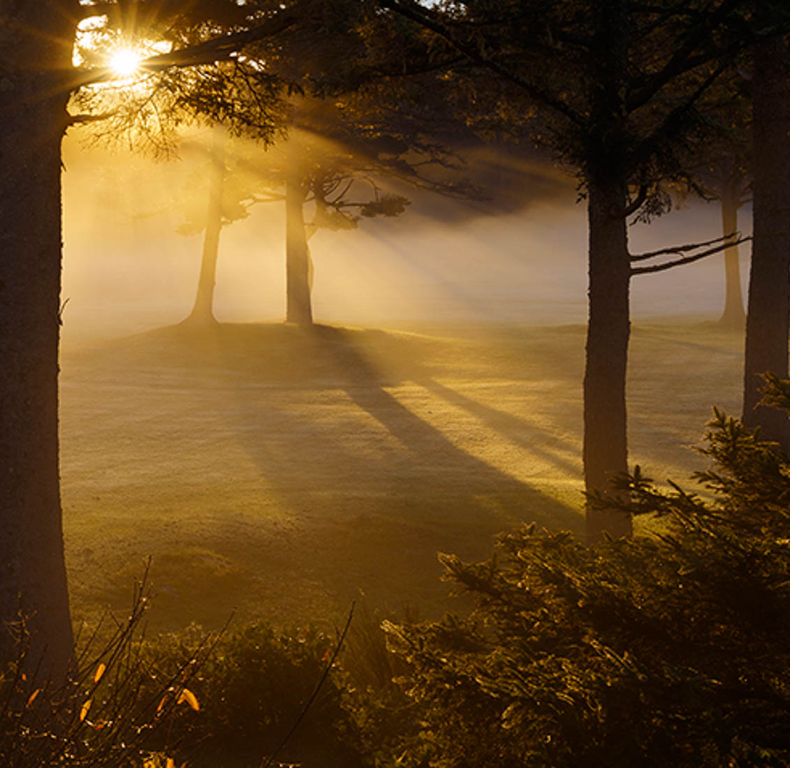 Beautiful Jane. I love those foggy mornings and evenings. I am distracted by the blue sky as well. I thought about trying to tone it down but part of my distraction is the color. Such a saturated blue with the subtle yellows of the mist over the (golf course?). Anyway in LR I cropped it different ways and finally thought I'd try cropping the sky out altogether. Totally different picture. Anyway fun to play with. Not sure I am crazy about the tree boardering on left side but that was the only way to crop out all the blue.