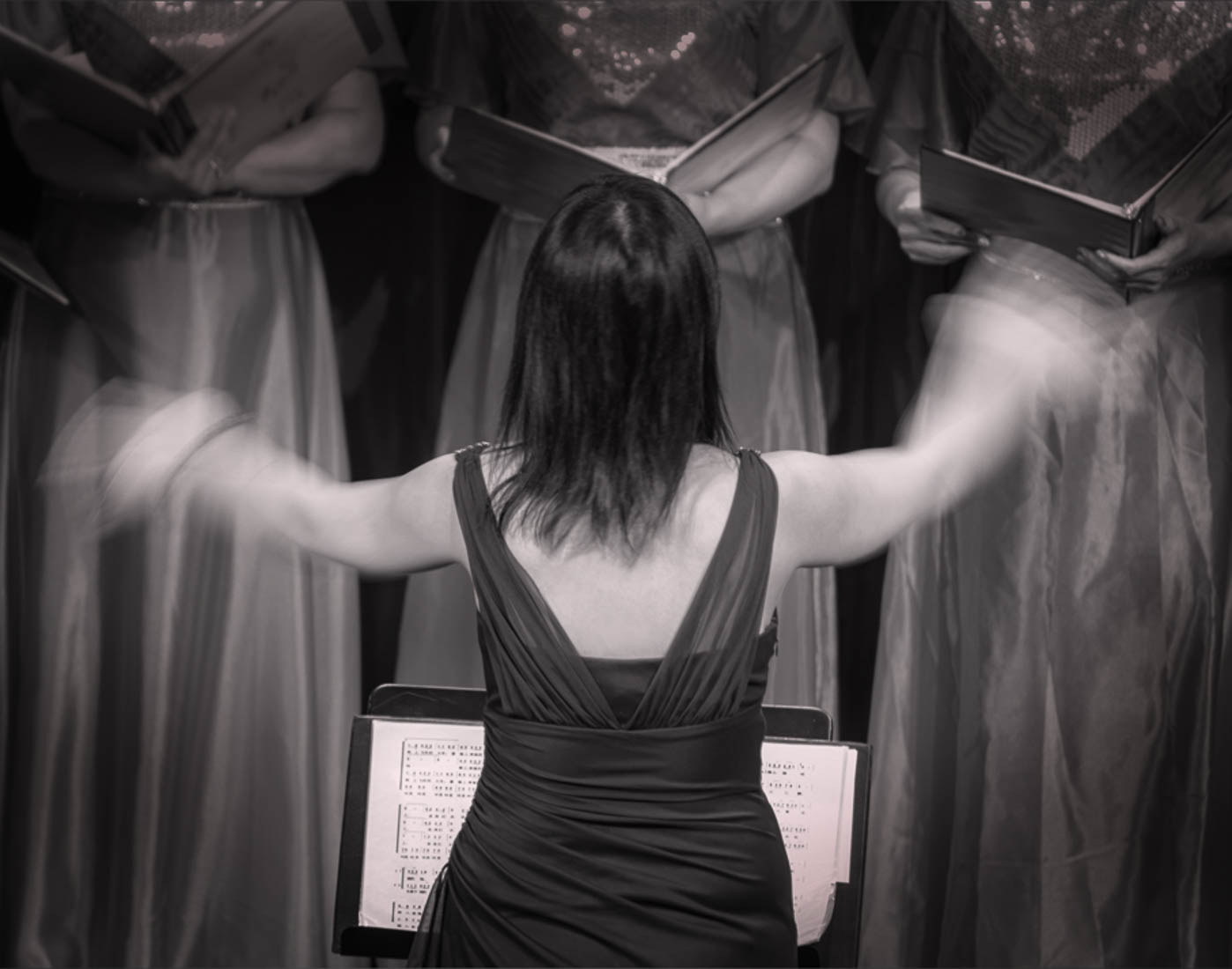 Judith you definitely captured the hand motion here. Well done. I prefer the b/w to color as well. As you want to make this a journalistic image editing is limited. I did decide to play with this in LR though,treating it as a creative work. I cropped the image on both sides then with the brush tool burned the edges. I highlighted the conductor so she stood out a bit more. Not sure I like it better but I like to experiment. Anyway, had fun with this. What a great vision Judith. Good job capturing it. |