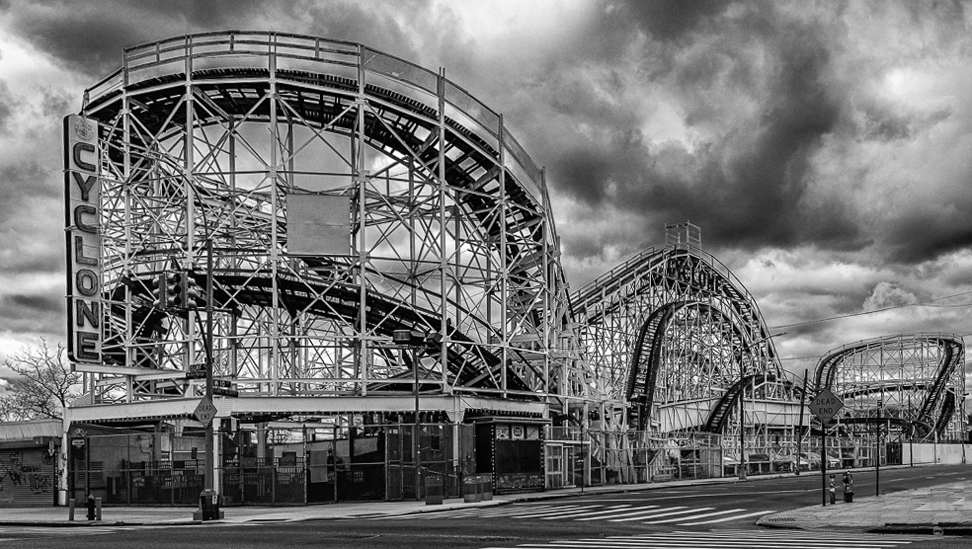 Joe these are great curves! I like the angle of the shot so we see maximun curve with the cross walk lines beautifully leading us into the picture. I played around with this in LR just to see if there was a way to enhance the roller coaster and make it stand out more then I thought I don't like the garbage cans so got rid of them (that's legal right Lance, lol) then decided the equipment above them on the right edge of the image was distracting so removed that. I increased the blacks a bit on the roller coaster with the brush too. I also cropped it to maybe give the roller coaster more impact. Anyway, had some fun with it. Obviously non of this legal in journalistic image. Nice job Joe, it's well captured. |