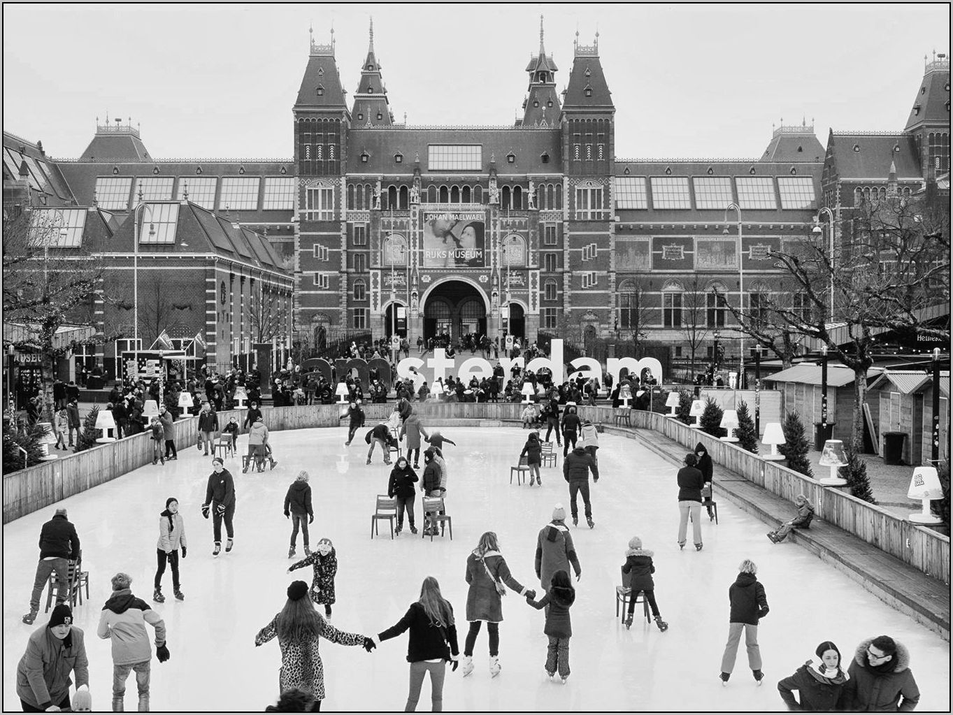 This is a interesting image of a grand historic building & festive event. I agree with Stephen that the Old Building needs a add. Also the artifacts on the border and bright light in the center just below the T is a little distracting for me. This a little different version via Silver Efex & added a different border. What do you think? |