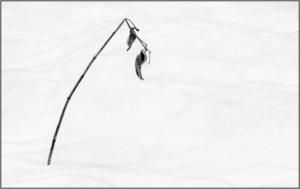 Nice image keeping with KIS (keep it simple) that I like a lot. Your composition, snow texture, impact & cropping works for me. What to you think of adding something like this thin black then silver border? |