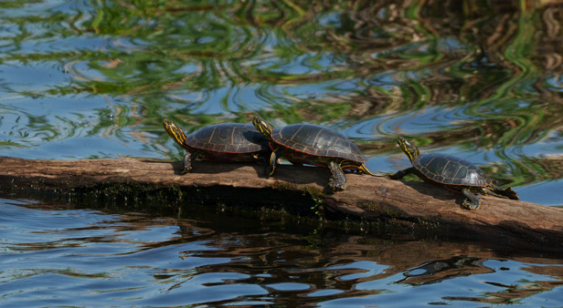 LuAnn, I really enjoy taking photos of wildlife and these turtles are just so cute and all lined up! I like your image very much. The reflections in the water are very artistic and frame the turtles. My only suggestion is to crop it less tight on the left in the direction they are facing. I cropped your original to about the same as you have only with a bit more room on the left. I am curious what you think of this idea. |