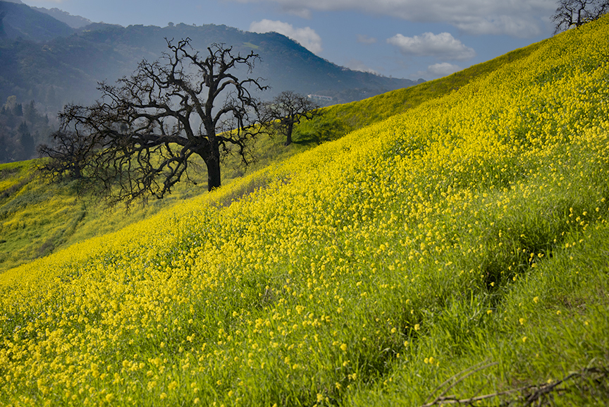 Joan, this is a very nice image of the mustard and the tree (oak tree?). I like how the angle in which you took the image leads right to the tree. I don't think your sky replacement works well though with the brightness in the foreground. I played with your original and used the sky replacement tool to get a different look which also shows the mountains a bit more clearly. I am not sure this is a perfect fit but it gives a different feel to the image. Let me know what you think. |