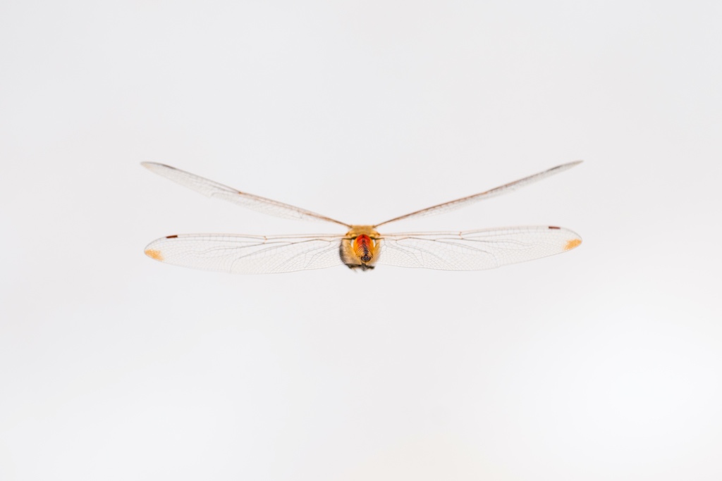 Face or no face? Well, in this case, I would say I didn't have much choice. I kind of walked into his triangle. The base was in front of me, the peak behind. Anticipating its movement across the base from point to point is far easier, and more consistent, than getting it at the peak. Second, I didn't want to disturb the subject. Third, I already have photos of dragonfly faces. Fourth, it was 8-9 feet in front of me, and at 410mm, just getting it in frame is a win. Outside of all of that, some choices need to be outside of conventions. The ideal "headshot" for flying objects is facing the viewer at roughly 45 degrees for the perfect head-neck-should(wing) approach. This standard convention means that what we see for the most part has created and perpetuated the notion that the most "interesting" parts are in this region. I choose this dragonfly photo from a group of three potentials because it is the "perfect" headshot, except reversed.