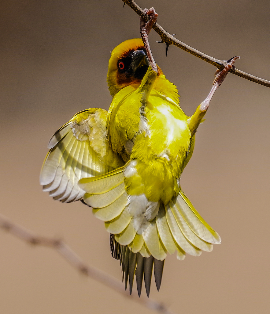 I realize how lucky I was to be in the right place at the right time to witness his dance. Also, quite lucky to get the detail that I did as the dance is pretty fast. Interestingly, the entire dance was done hanging upside down. |