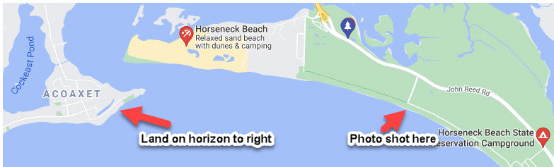 All these scientists argue that the earth is round or flat. Here's proof it's concave! :) This was taken at Horseneck Beach in Westport MA. Actually there is land to the right. I could of turned more to the left but would of lost some sunset and beach reflection. See map I uploaded.