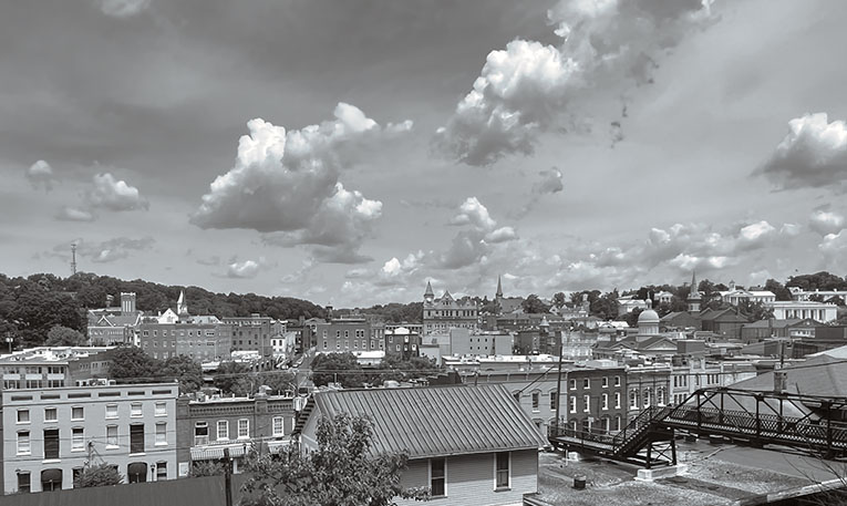 Interesting photo. Maybe cropping from the left to the tall building would help focus on it. |