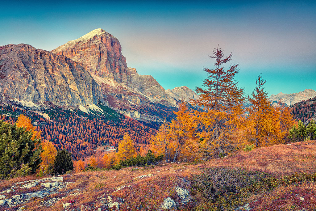 I made - as suggested - the following changes at my photo: I made it a bit sharper and reduced the green contrast in the trees (mountain pine) in the foreground.