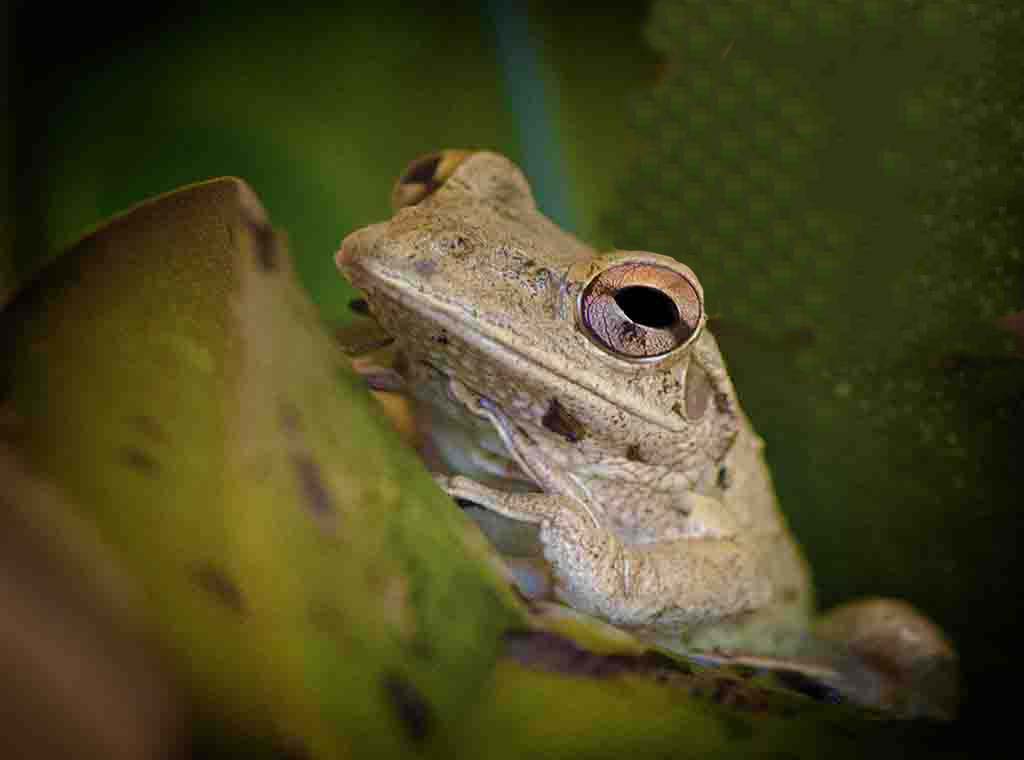 I like your image of the frog and agree that the orange area needs removing to create an all green background.