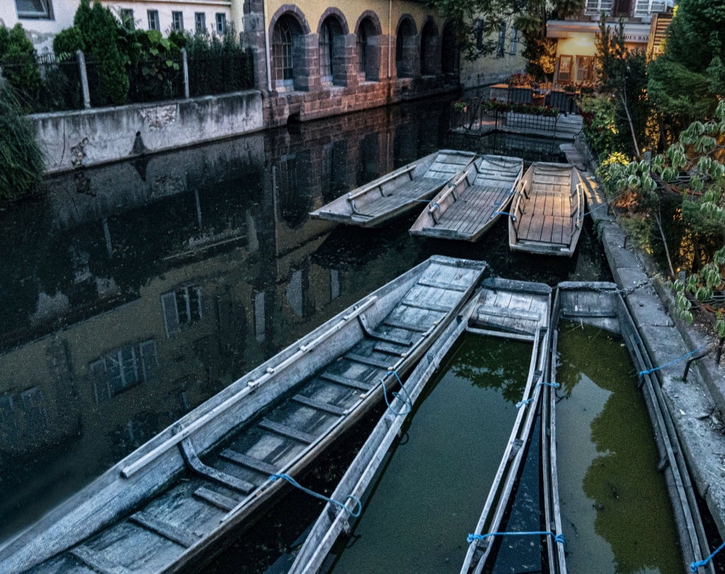 I like the way that you have used the boats to lead one into the image. I feel that there is a conflict between the light of the porch and the bright yellow above the arches on the left for attention. I feel that the buildings on both sides should be vertical. I suggest applying a transform perspective correction and then cropping off above the arches would create a stronger image. |