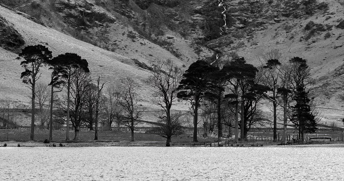 Here is my mono version of the image, if think it will be better printed on a metallic paper as that will help make the trees stand out more. it all depends on how light the grass and bracken on the hillside are converted. |