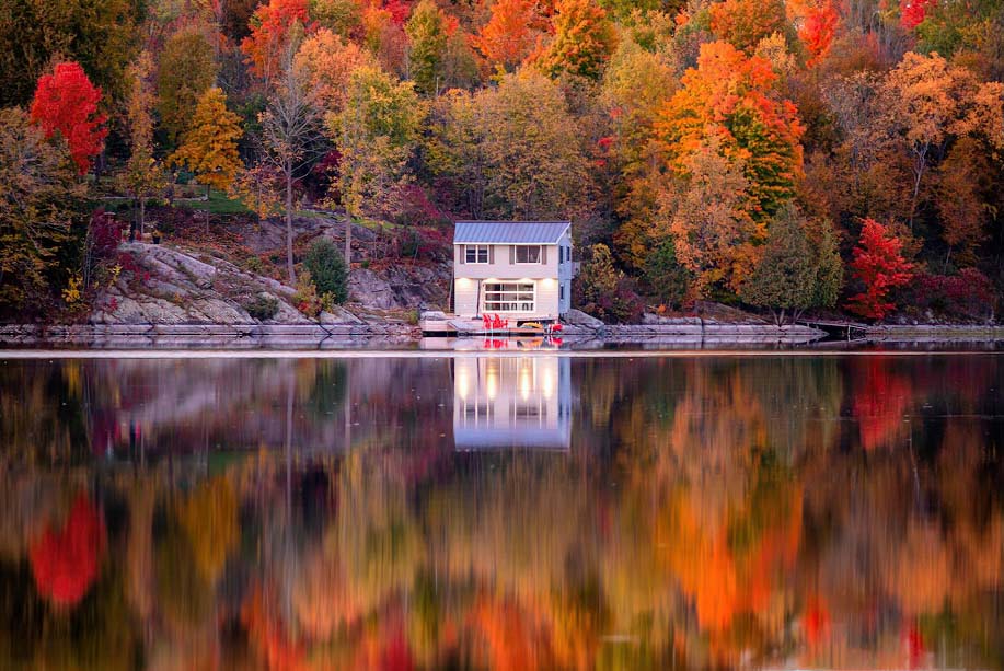 Beautiful color. good symmetry. I'd crop out the edge of the building that's on the upper left edge. There appears to be some kind of non natural material above the rocks on the left--two red vertical slashes and a bright white horizontal one above the red ones on the left--easy to clone out I cropped in on both sides to get rid of more of the less color trees--trying to make sure symmetry was maintained. That way there are brighter trees nearer both edges |