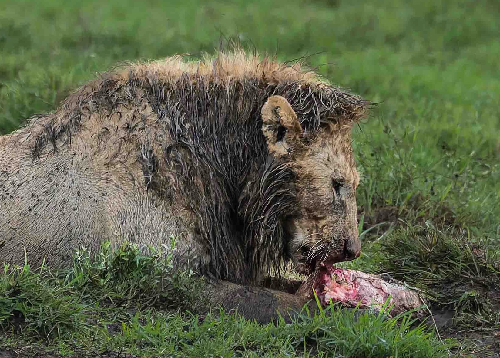 Just a thought about another way of handling this. It lets the lion's eye and it's attention to the kill become more of the story. |