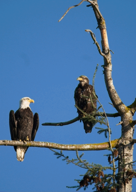 Nice capture of parent/fledgling! The post work to sharpen up the subjects was well done so , but I do agree with Sharon that the blue sky is a bit intense.