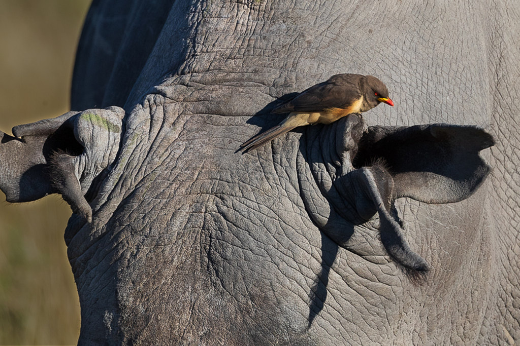 Nice crisp detail and strong story, but I had to look at the original and your exposition to sort out what animal was the base for the Oxpecker. Consider cropping so both rhino ears are visible and then masking the bright background down to alleviate the glare. I played about a bit and came up with this suggestion. |
