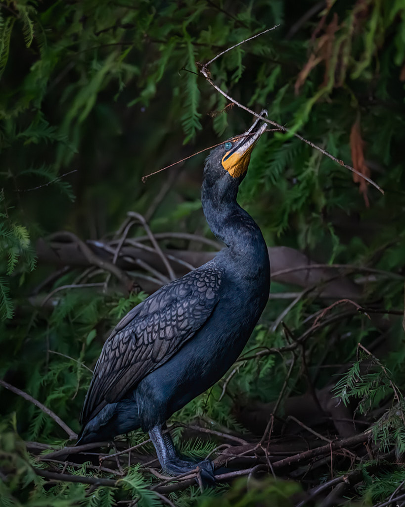 Nice capture and I agree the darks work well. My only suggestion would be to crop even tighter to remove the veritcal branch on the left.