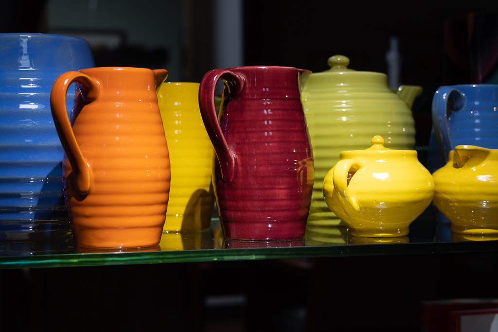 Mary Ann, thanks for your comments. I initially thought about cropping out the book (it is slightly out of focus), but ultimately left it in for two reasons: First is, the line up of pottery lends itself to the panoramic crop. And secondly, I wanted the context the book provides, emphasizing these are collector's pieces. |