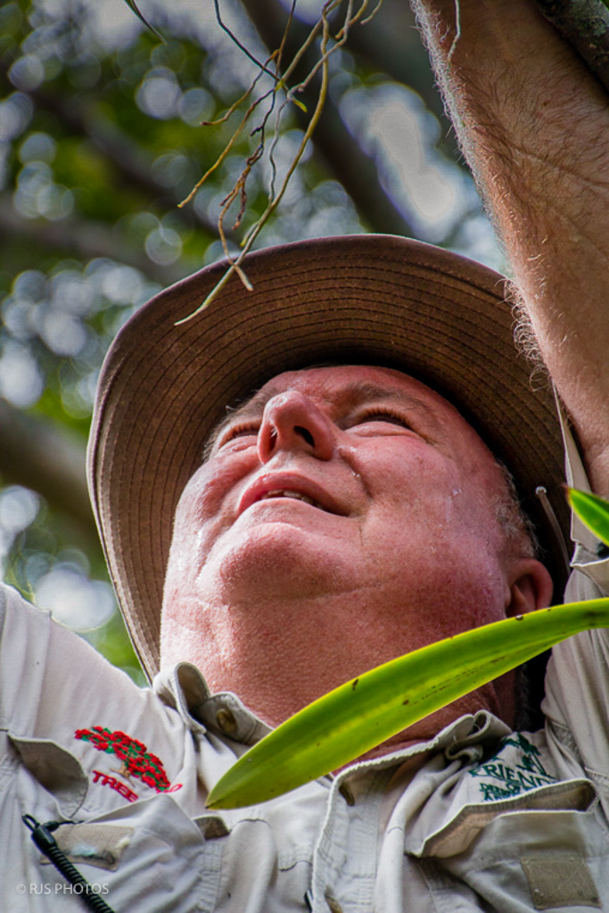 Randolph, as a former orchid grower I've always envied those of you who live in a climate where tropical orchids can be grown out of doors. Your long focal length gave a nice blur to the background, allowing your subject to stand out. Your crop makes the viewer hone in on the man's facial expression showing exertion and concentration on his task . The detail is nice too (do I imagine some sweat on his brow?) and I think your edits of your subject are good. I did, however, find the bright background areas somewhat distracting. I brought your image into Lightroom and used a gradient and a brush to bring down the exposure of the background and also to bring in some detail under the brim of his hat. Let me know what you think. As an image to document the dedication and work it takes to make these beautiful plants available for everyone to enjoy, your image succeeds very well . |