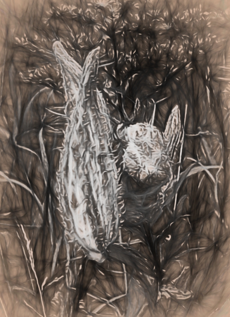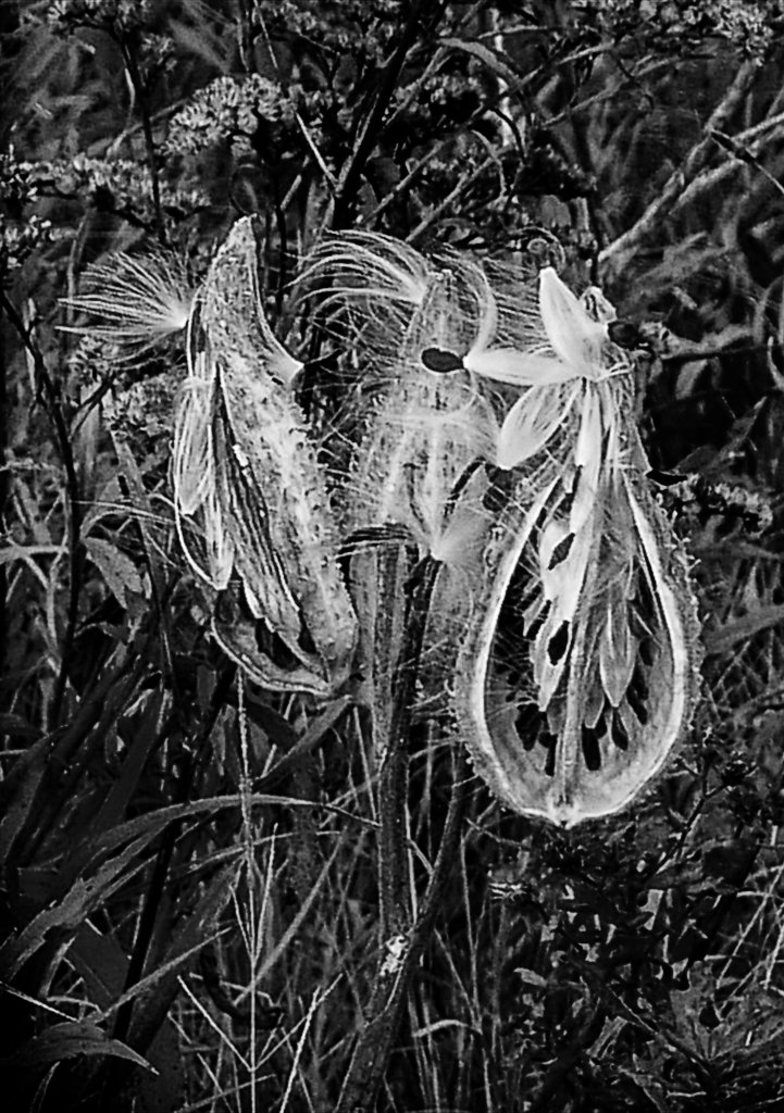 Karl, to be honest, your image doesn't work for me. I think the pods have a lot of interest, but the background is chaotic and your subject gets lost in that chaos. Also, the pod on the left and the pods on the right could easily be two separate subjects. I cropped your image and brought it into Silver Efex for your consideration.