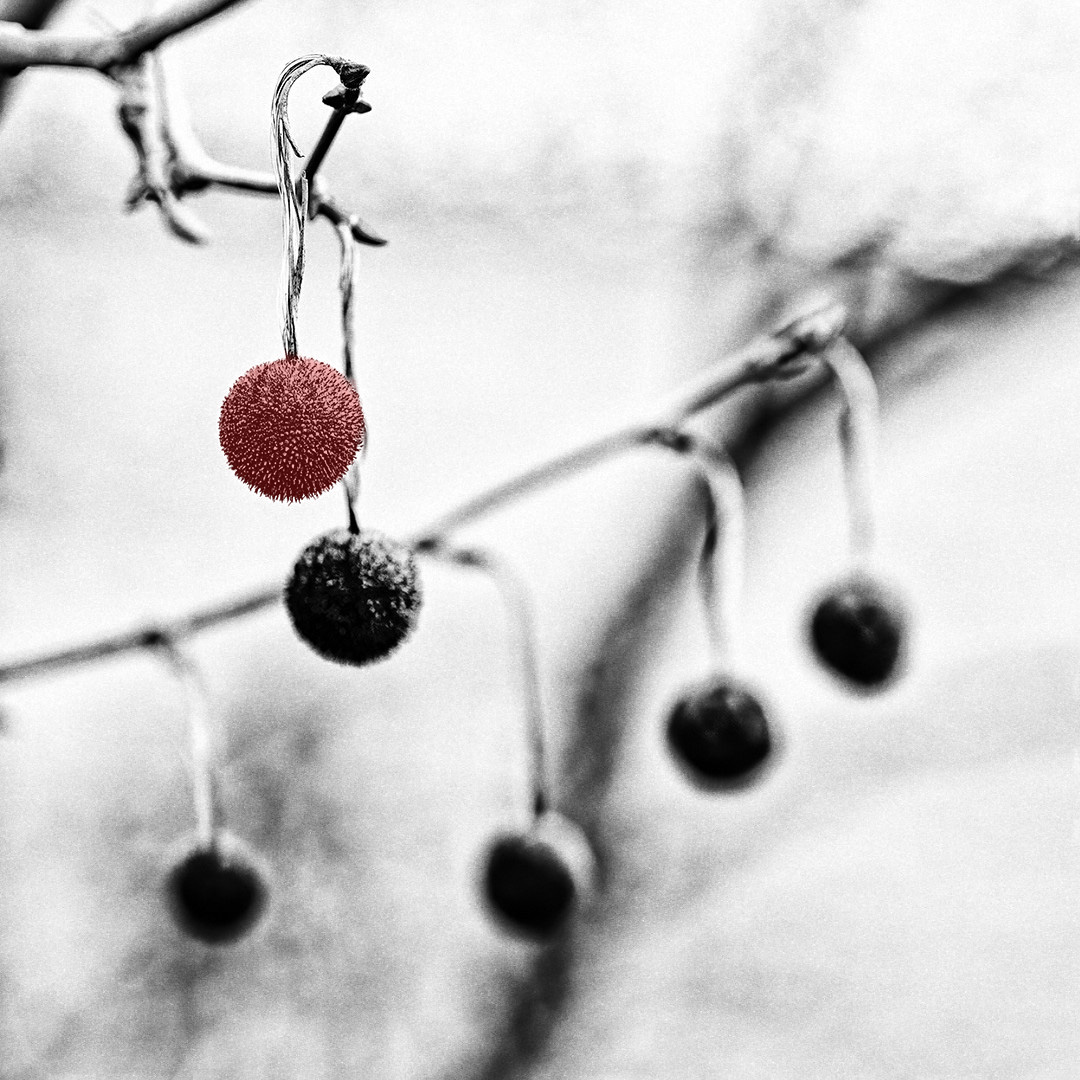 Gerard, sorry - I don't know / understand what happened. I first took your image into Silver EFEX and added Tri X 400 grain - ALL IN MONOCHROME - then I posted it. Next, I took it into Photoshop and made the one seed pod red - then posted that (Two distinctly different renditions!). Now, the all monochrome one disappeared and there are two of the same image (Grain + colorization). Perhaps because I didn't change the title between the two edits? |
